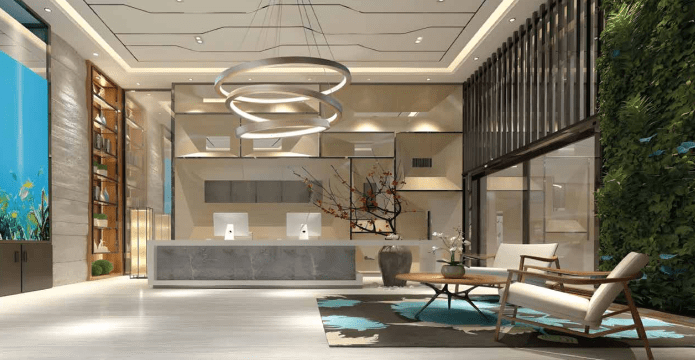 • Reception desk and floor finished with a superb combination of marble, granite and exclusive imported material as per design.
